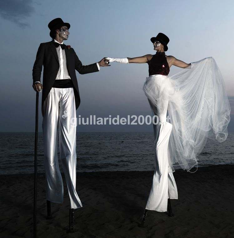 Indispensabili per spettacoli di strada, feste per bambini, feste di piazza e teatro di strada, i nostri Trampolieri allegri, giocheranno con i bambini che potranno scatenarsi in trenini allegri che passeranno sotto le loro gambe e sapranno interagiscono simpaticamente anche con gli adulti grazie alla loro contagiosa gioiosità e simpatia.