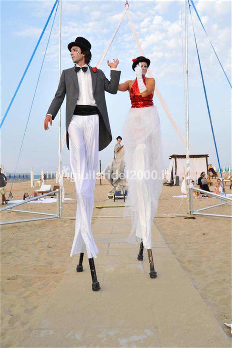 La figura del Trampoliere è indispensabile per feste all’aperto. L’attrazione del Trampoliere è fondamentale per lo svolgimento di animazioni di strada di tipo itinerante, proprio perché riesce ad attrarre l’attenzione del pubblico anche a distanza. I nostri Trampolieri con i loro costumi originali ed eleganti sono gli artisti ideali per attirare l’attenzione nel caso di comunicare l’inizio di uno spettacolo o di una manifestazione pubblica ricreativa. La loro capacità di interazione simpatica con il pubblico passante li rende perfetti anche per campagne promozionali di attività commerciali o per distribuzione di gadget e locandine o per annunciare altre attrattive che hanno bisogno di una guida bene in vista.