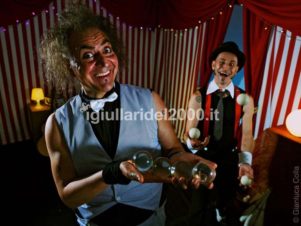 Un Eccezionale duo di Giocolieri-Fantasisti coinvolgerà il pubblico di bambini e adulti attraverso le gag clownesche più divertenti con acrobazie, giocolerie, magie, trovate fantasiose e strappa risate con tutti i più strani arnesi elaborati dalla loro fantasia. Un’ora e mezza di show a soli Euro…… (per Offerta Speciale Cip & Ciop Show compila il nostro modulo richiesta seguente https://www.igiullaridel2000.it/contatti-associazione-animazione-e-spettacolo-artisti-di-strada).